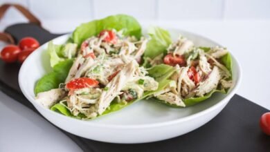 Avocado Chicken Lettuce Wraps With Herbed Yogurt Sauce
