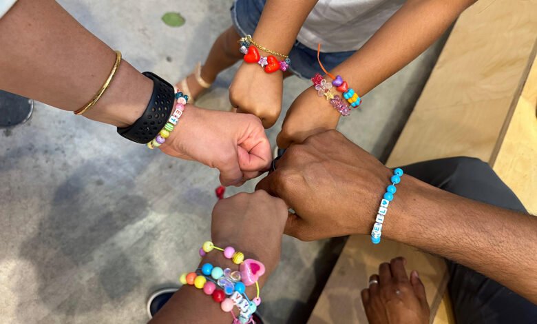 People make bracelets during the Build-a-Bond Raksha Bandhan event hosted by Modi Toys in New York, Aug. 7, 2025. (Photo courtesy of Avani Sarkar)