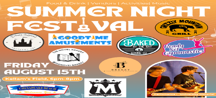 CHESAPEAKE BEACH, Md. — The Town of Chesapeake Beach will bring music, food and local flair to Kellam’s Field this Friday, Aug. 15, with its Summer Night Festival from 6 to 8 p.m.