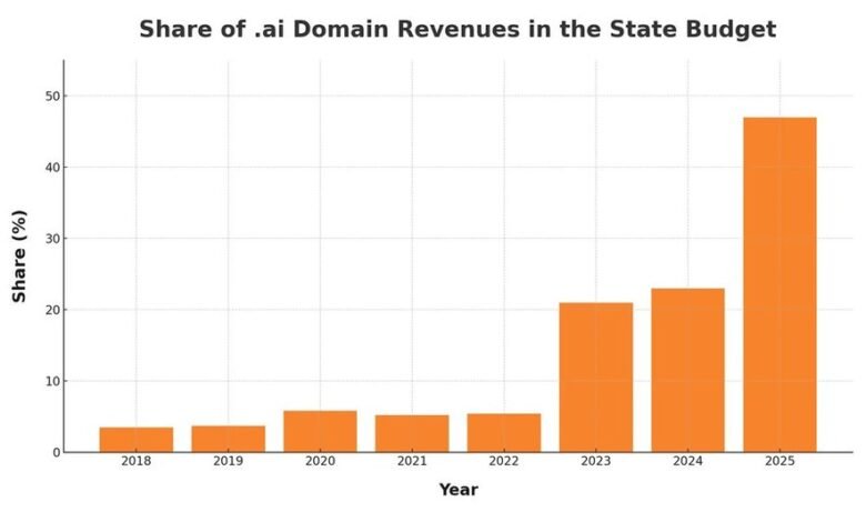The tiny country of Anguilla (pop 15,000) has an official country top-level domain code for the internet of .ai. Domain name registrations have surged from 48,000 in 2018 to 870,000 in the year to date and that source of revenue alone now accounts for nearly 50% of state revenues.