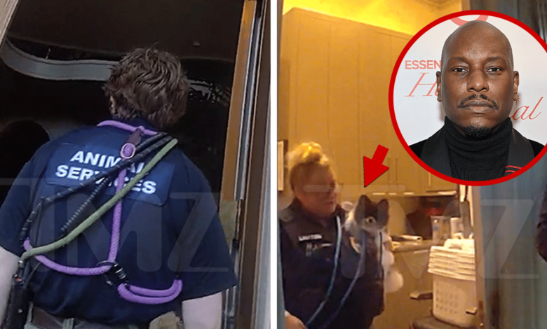 Fulton Country Police and Animal Services look around the property, taking photos as they go … before the clip cuts to the front of the property — where Tyrese’s grandmother has been sat in the back of a police car.